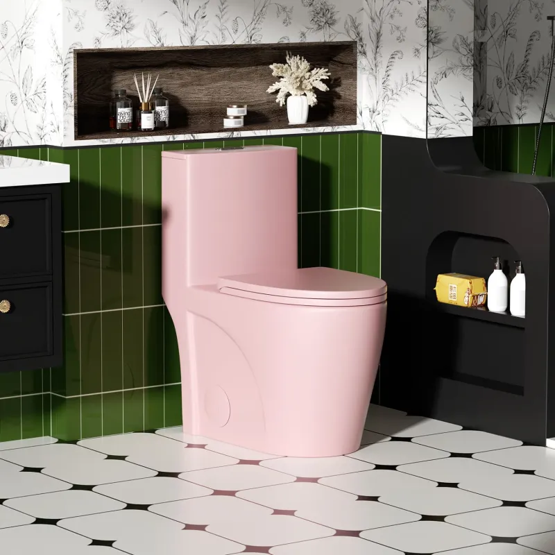 Fan Shaped Design 1 Piece Toilet With Elongated Bowl And Soft Close Seat, Dual Flush 1.1 / 1.6 Gpf – Pink Flower