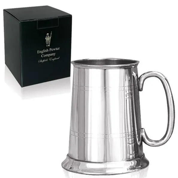 Elegance and style often result from the simplest of designs and that is exactly what you find with this outstanding one pint pewter tankard.