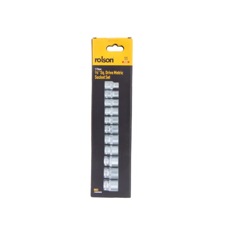 11 Piece ⅜” Sq. Dr. Metric Sockets – CrV steel sockets, hardened and tempered, matt finish, sizes 8, 10, 11, 12, 13, 14, 15, 16, 17, 18, 19mm. Supplied on rail