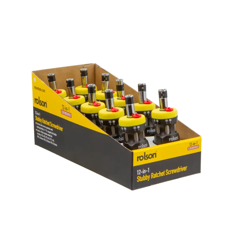 12 in 1 Stubby Ratchet Screwdriver – Forward and reverse with locking action, ¼” bit holder, the double ended bits are stored in handle for painless storage, sizes include slot 4, 5, 6mm, Cross point PH1, 2, 3, PZ1, 2, 3, Hex 4, 5, 6mm
