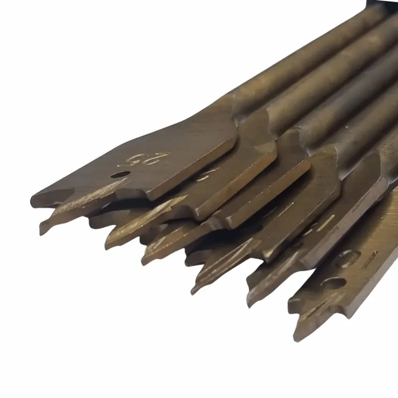 14 Piece Hex Shank Wood Drill Bit Set – 6pc Titanium coated flat wood bits, ¼” hex shank, 10, 12, 16, 18, 22 & 25mm. 8pc carbon-fiber steel wood drill bits ¼” hex shank, 3, 4, 5, 6, 7, 8, 9 & 10mm