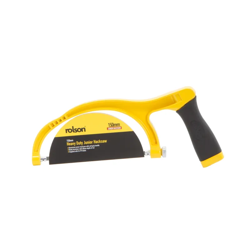 150mm Heavy Duty Junior Hacksaw – Aluminium alloy frame with smooth grip handle handle, blade tensioner with 62mm depth of cut. Supplied with 24TPI blade