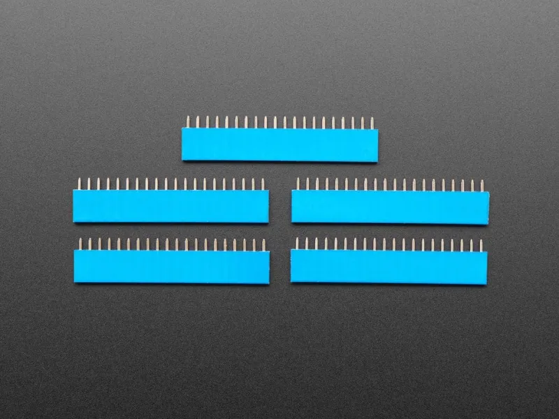 Each pack contains five sapphire 20-pin 0.1″ pitch female headers. These are a little extra special in that the plastic holding the pins together is fabricated of blue plastic instead of classic black.