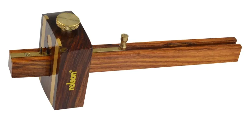 Precision morticing tool crafted from hardwood with dual hardened marking spurs for accurate layout work. Features brass-inlaid faceplate and adjusting mechanism for consistent, repeatable measurements up to 210mm. The tough construction and quality brass components ensure this gauge withstands years of workshop use, making it an essential addition to any serious woodworker’s toolkit.