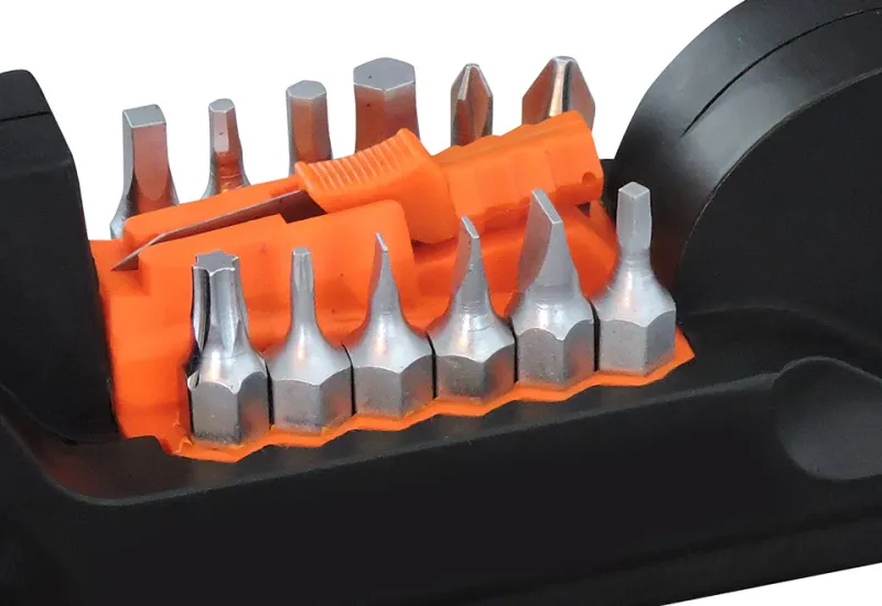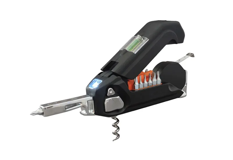The 36-in-1 Multitool lets you tackle dozens of everyday jobs with ease, from furniture assembly to hanging pictures to bike repairs. Features a snap-open screwdriver with 13 double-sided bits, magnet, corkscrew, hammer surface, 6-ft. measuring tape and LED flashlight. Works for in a kitchen drawer or glove box.