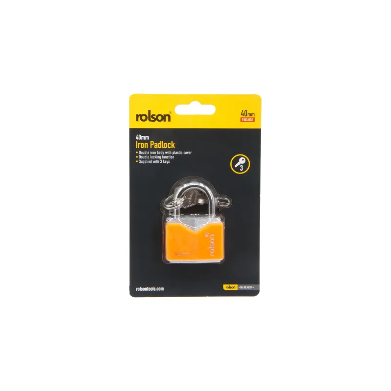 40mm Iron Padlock – Double iron body with plastic cover, supplied with three keys