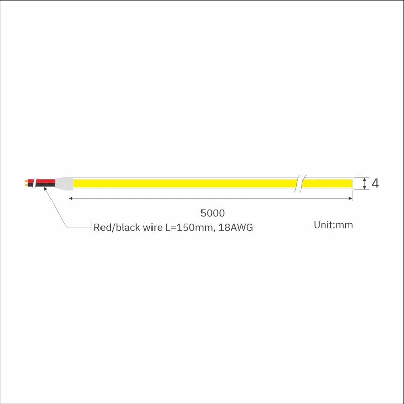 A Super thin IP65 (splash proof) 5W COB LED strip light that creates a continuous, seamless light line result. Premium for bathrooms, kitchens, bars or exterior areas where splash resistance is required. Available in 2700K warmer, 3000K warm, 3500K supple, 4000K neutral, 5000K cool and 6500K cooler light temperatures.