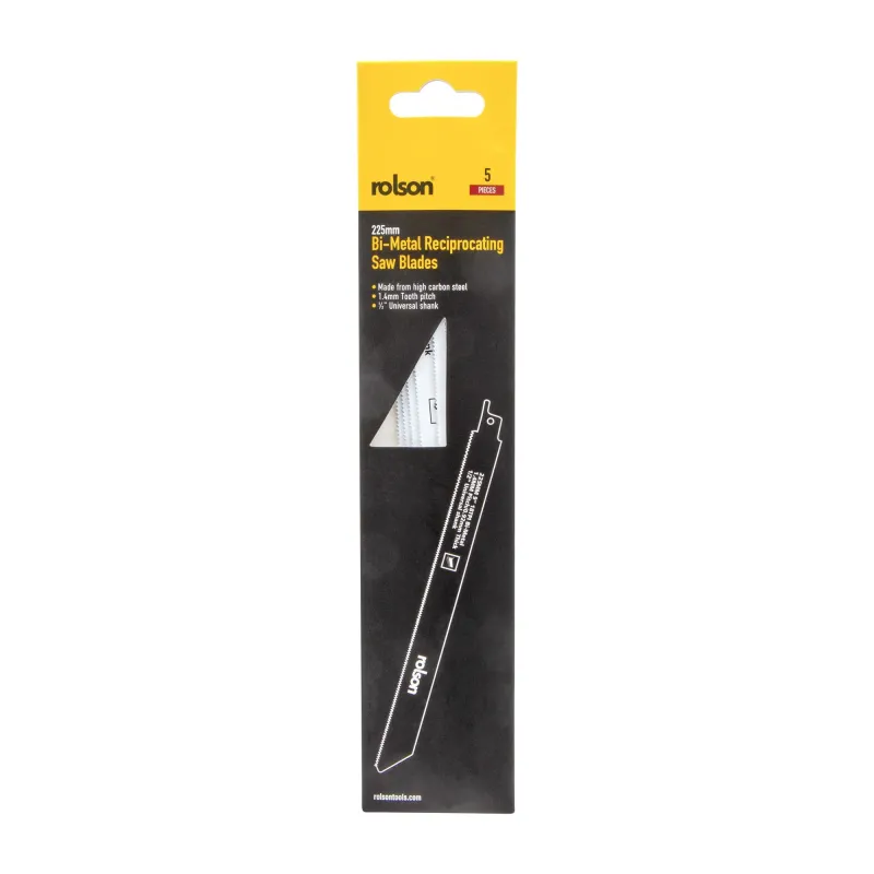 5 Piece 225mm Bi-Metal Reciprocating Saw Blades – High high-tech steel blades, 1.4mm tooth pitch, ½” universal shank.