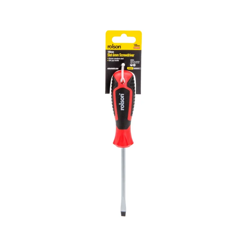 This professional-grade slot screwdriver features a 6mm blade width and 100mm shaft length, making it ideal for precision work on smaller fasteners. The satin finish shaft fights off corrosion and grants a refined appearance, whilst the magnetic tip securely holds screws in place, reducing frustration during installation. The ergonomic rubber grip ensures relaxing handling during extended use, minimising hand fatigue and improving control. Engineered for reliability in both workshop and maintenance applications, this screwdriver delivers the durability and performance expected from quality hand tools.