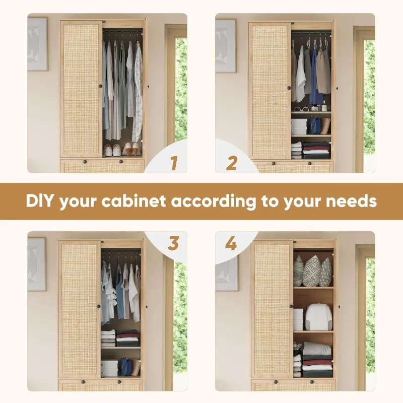 - Breathable Storage – Rattan doors preserve clothing, prevent odors, and keep items dry naturally