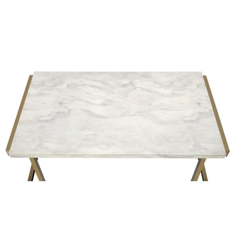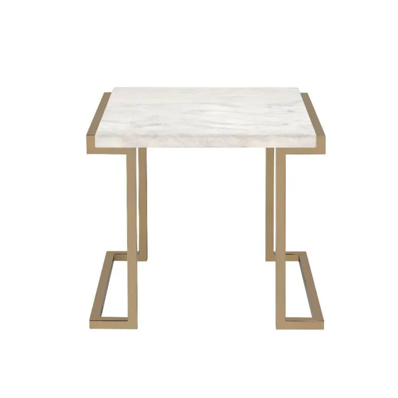 ACME Boice II End Table, Faux Marble & Champagne