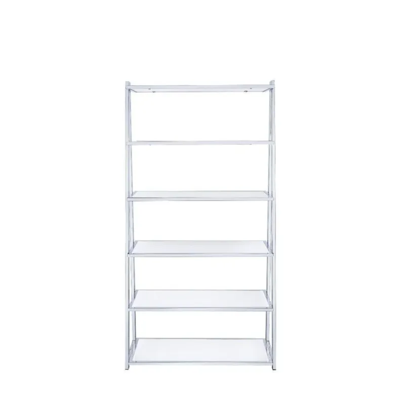 ACME Coleen Bookshelf, White High Gloss & Chrome ● Best Price Guarantee ● Premium Quality Materials ▶ Sale Ends at Midnight