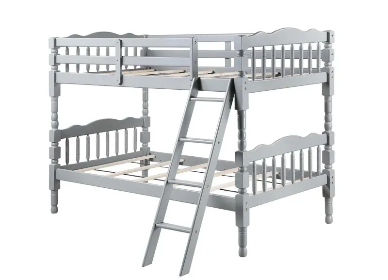 KD, T/T Bunk • Convertible (To be used Stacked or 2 Separated Beds) • Slat System Included (6+6) • RF Front Ladders • Easy Access Guard-Rail (Top Bed) • Clearance Between Top & Bottom Rail: 28″ (715mm) • Homestead Collection: F/F Natural #02290, T/T White #02298, Natural #0229, & Honey Oak #02301