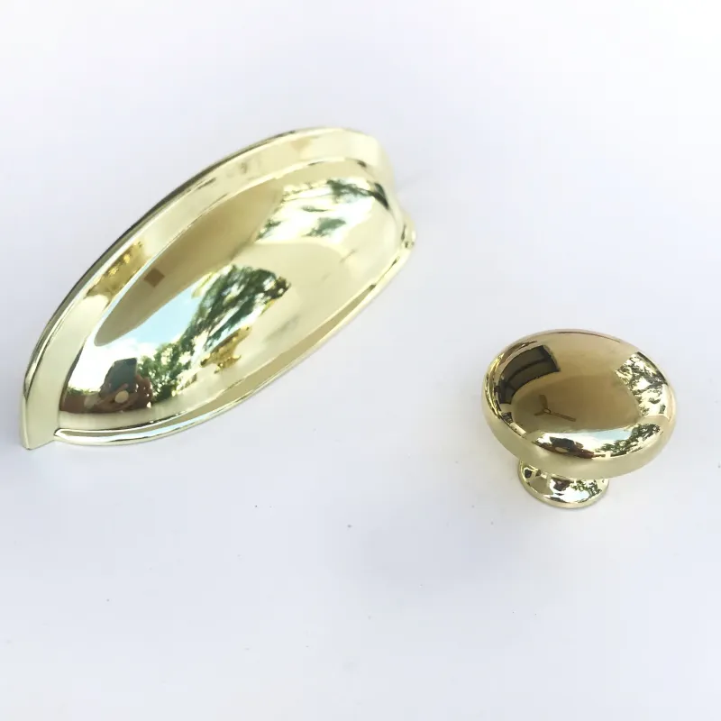 Polished Brass “Nadia” Round Cabinet Knob and Cup Drawer Pull. Let this beautiful cabinet hardware in a beautiful polished golden metal provide a wonderful flair on cabinet doors and drawers as you upgrade your decor and renovate your space. These items are sold per piece, individually. You can select either the round knob or the cup pull and toss in the quantity needed to your cart.