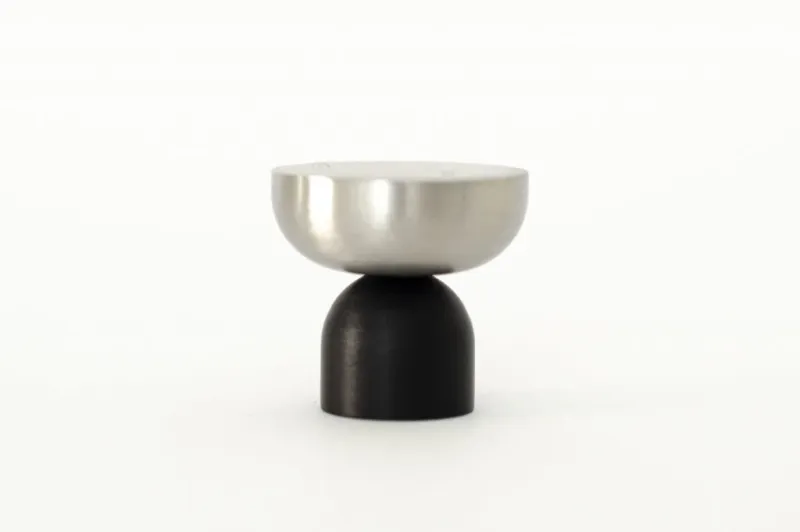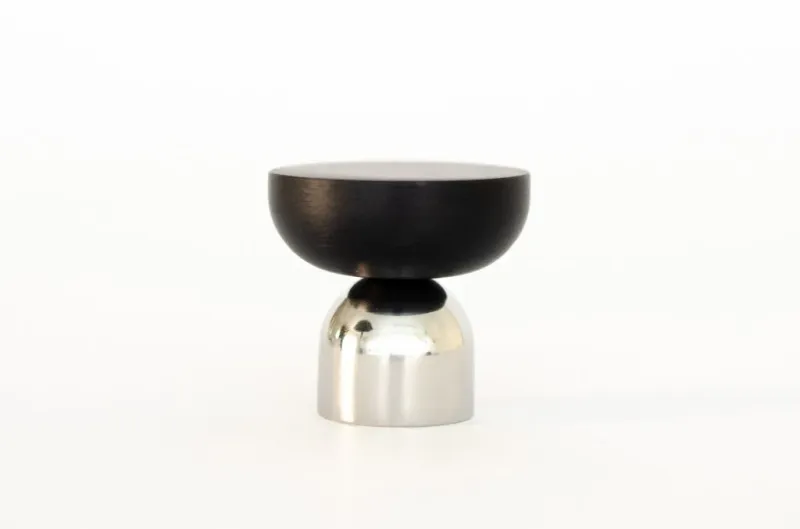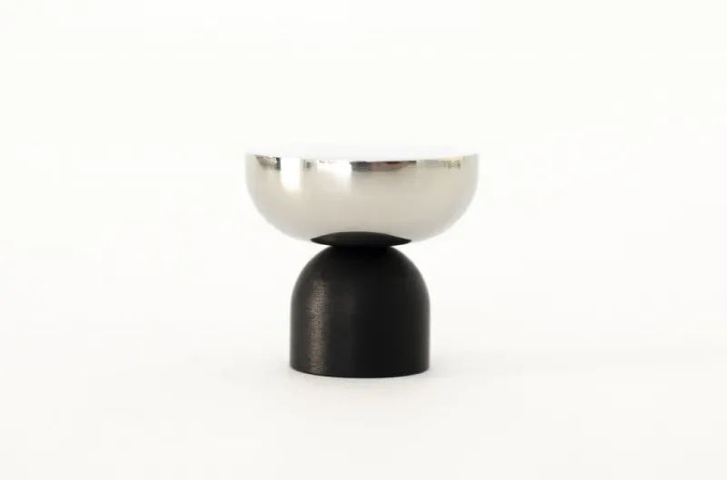 Dual-finish nickel and black “Raised Bowl” Round Cabinet Knobs and Wall Hooks. This one-of-a-kind and exclusive cabinet knob and hook is versatile and can be used on cabinets, furniture or other applications where a beautiful cabinet knob can be used but can also be installed on a wall or door as a hook. Includes hardware for both installation options.