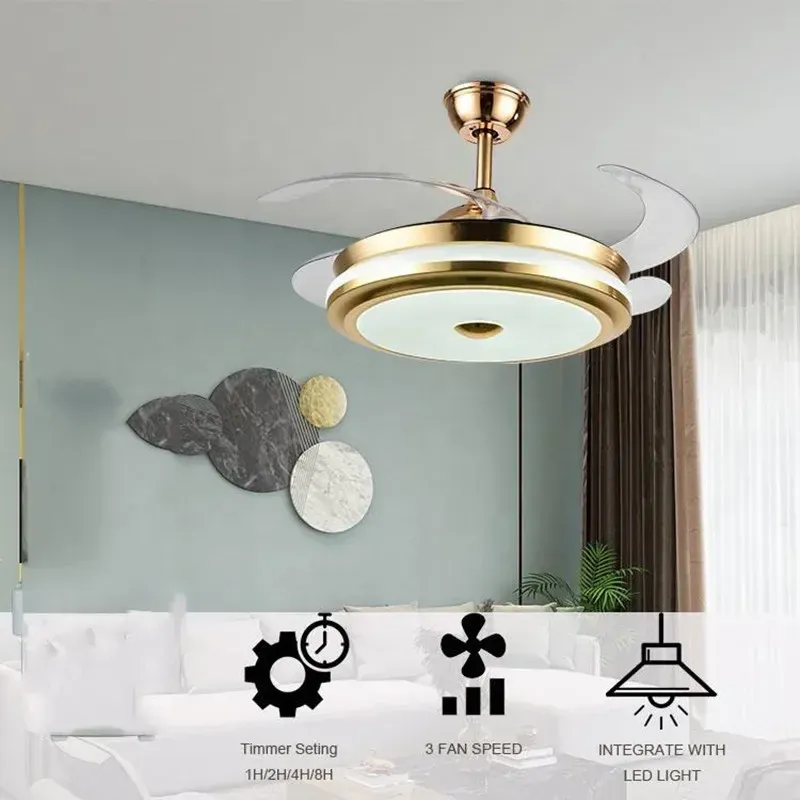 Crafted from durable iron with a sleek finish, this ceiling fan is as stylish as it is functional. The retractable blades add a unique touch to the design, giving you the option to customize the look of your fan.