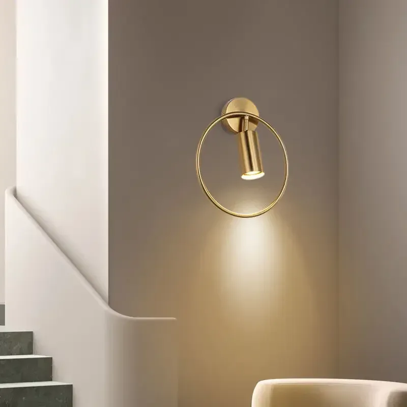 Afralia™ Adjustable LED Brass Gold Ring Wall Sconce Light
