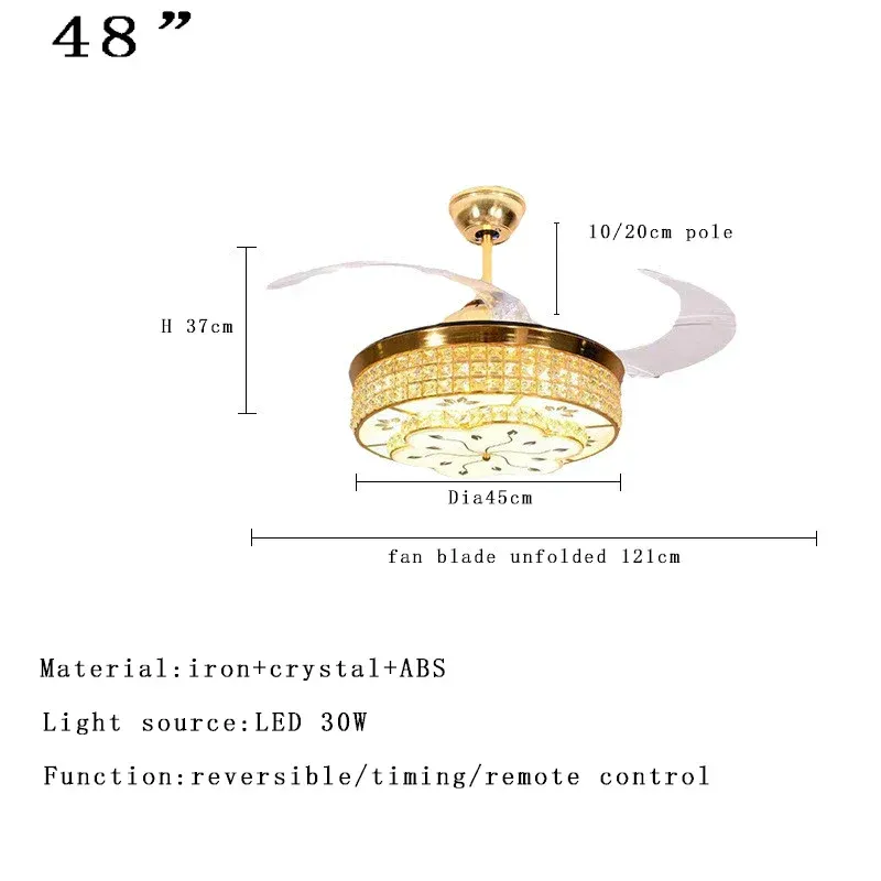 Introducing the Afralia™ Luxury Crystal Ceiling Fan Lights Remote Control, a stunning addition to your modern home decor. The retractable chandelier fan combines elegance and functionality to create a truly luxurious atmosphere in any room.