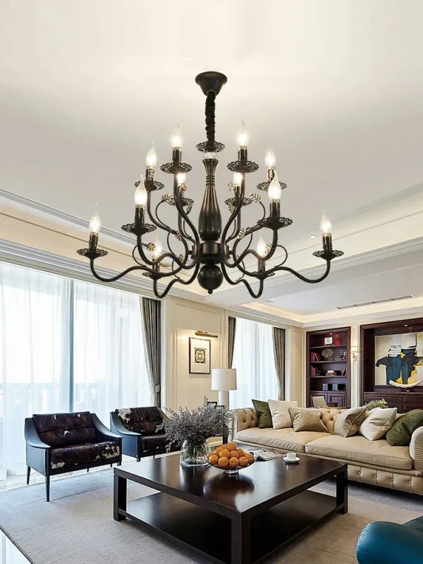 Afralia™ Wrought Iron Chandelier Candle Light Black/Gold Metal Fixture ★ Adjustable Light Direction – Customize Illumination ★ Metal Construction – Long-Lasting Durability → Illuminate Your Home Today