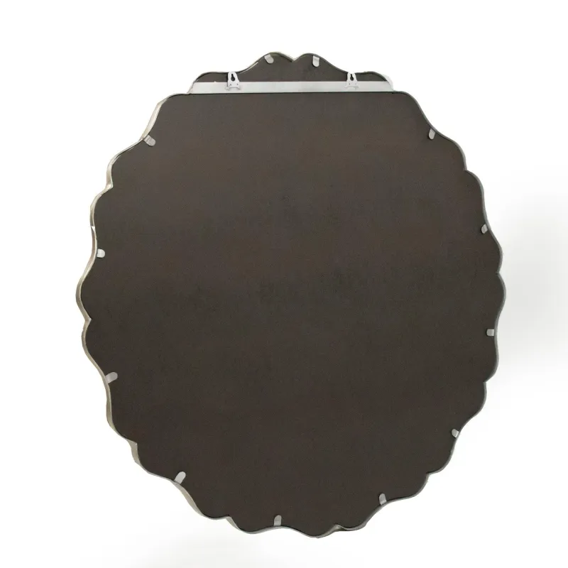 Scalloped mirror in distressed silver finish.