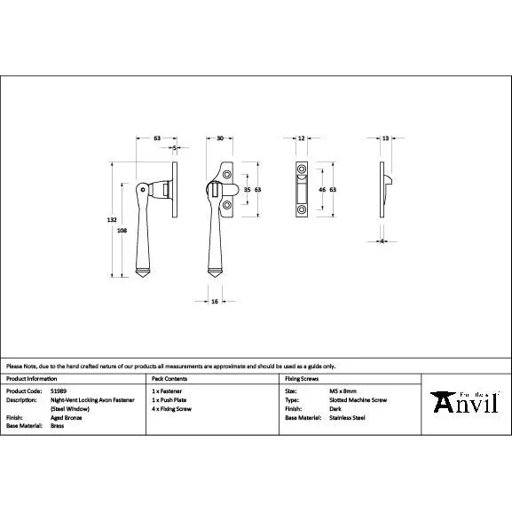 Aged Bronze Night-Vent Locking Avon Fastener (Steel Window)