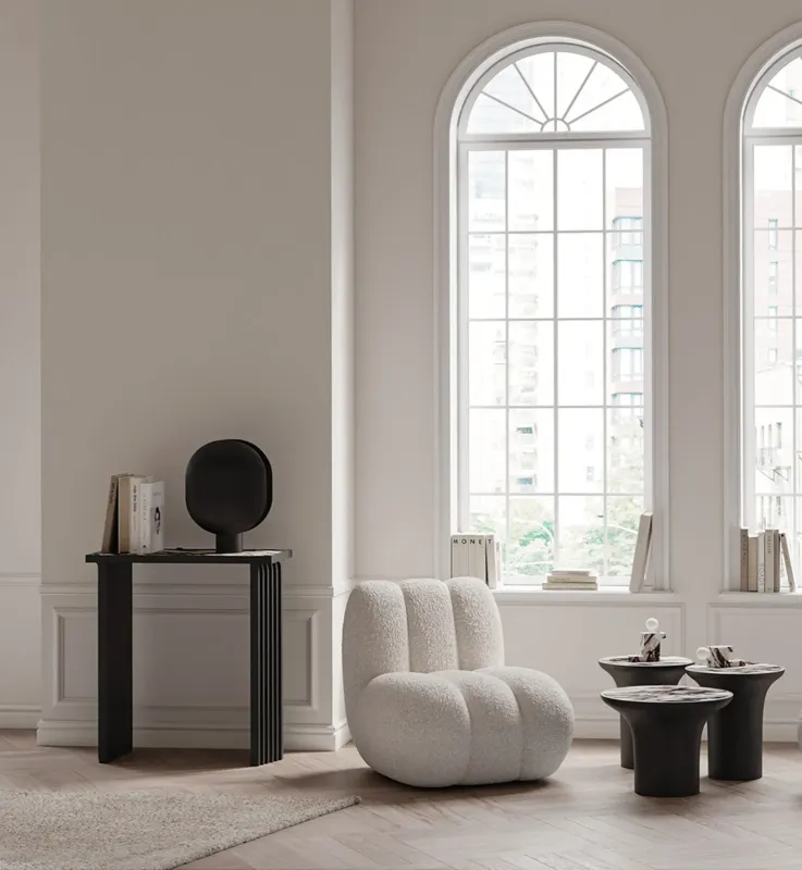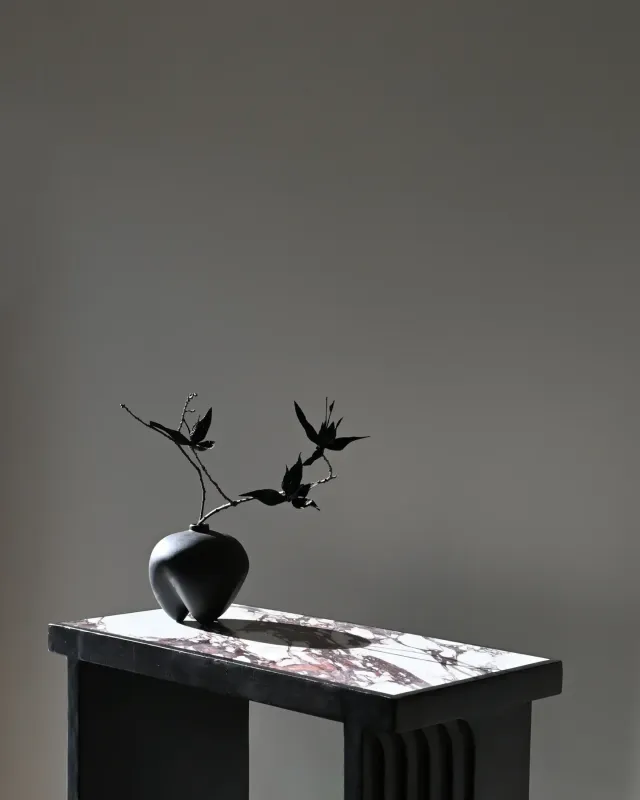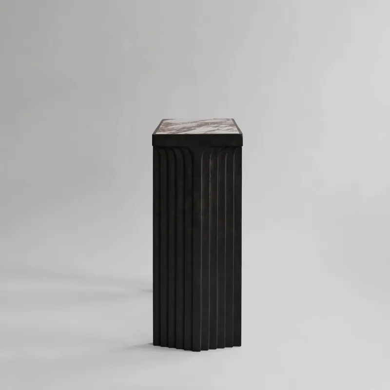 Made from a base of fiber concrete, the Arc Console features a tabletop of exquisite marble, emphasising the rich and beautiful patterns of natural stone. The polished surface softly reflects light, adding a warmth to the Arc Console.