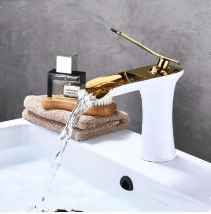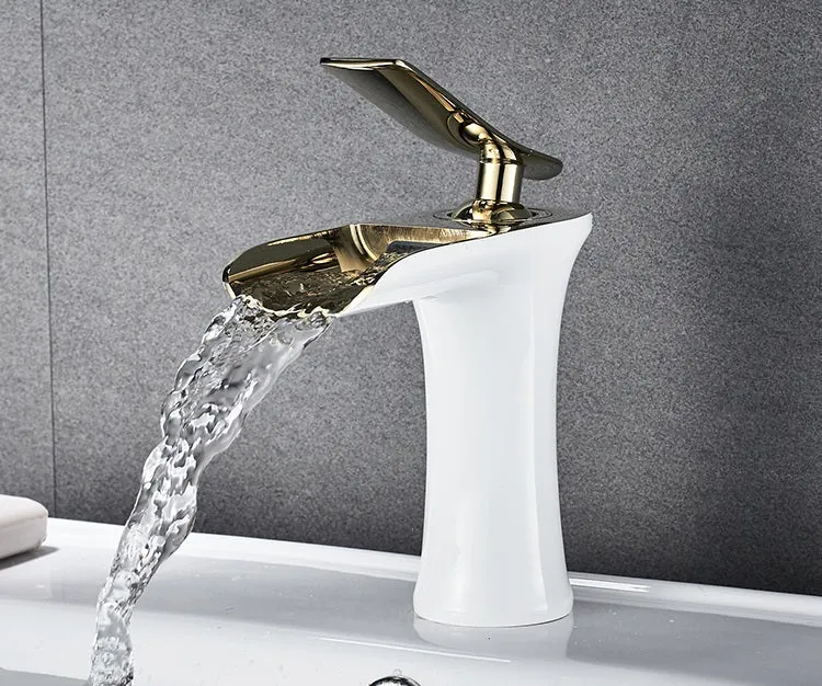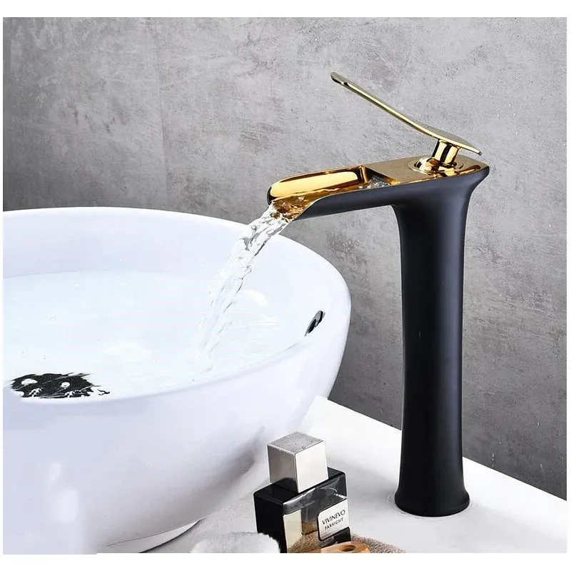 Notre robinet Effet Cascade Luxueux est disponible en quatre finitions élégantes : Or, Noir et or, Blanc et or, ainsi que Chrome.