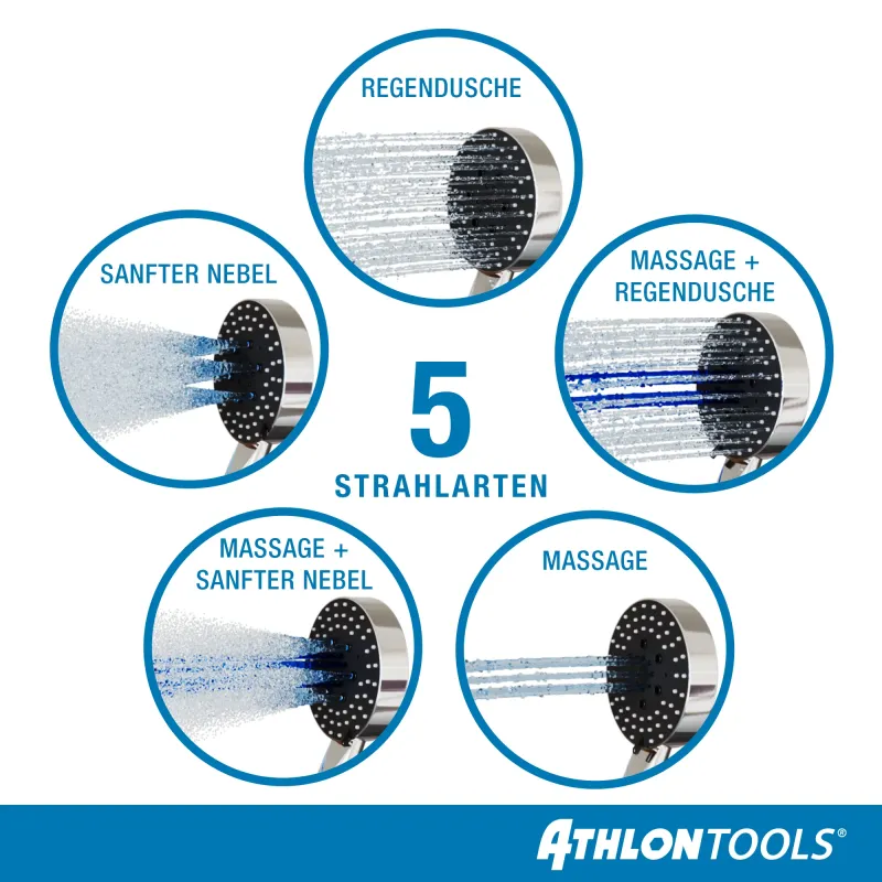 ATHLON TOOLS Duschkopf mit Schlauch – 5 Strahlarten Duschbrause