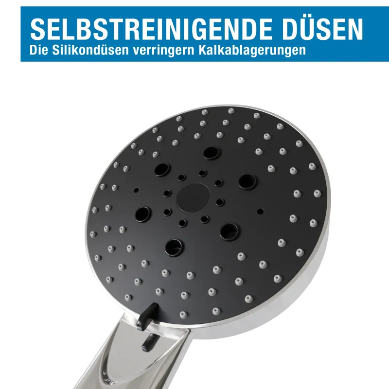 𝗪𝗔𝗦𝗦𝗘𝗥𝗦𝗣𝗔𝗥𝗘𝗡𝗗 & 𝗟𝗘𝗜𝗦𝗧𝗨𝗡𝗚𝗦𝗦𝗧𝗔𝗥𝗞 Der wassersparende Duschkopf reduziert den Wasserverbrauch, ohne den Duschkomfort zu beeinträchtigen. Dies ermöglicht eine nachhaltige Nutzung, die sowohl die Wasserrechnung schont als auch die Umwelt schützt.