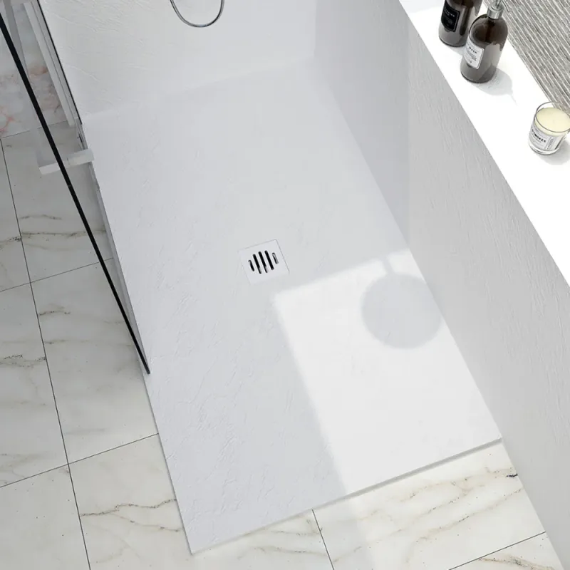 Base de douche Zitta Slate blanc mat drain central rectangulaire 48 x 36