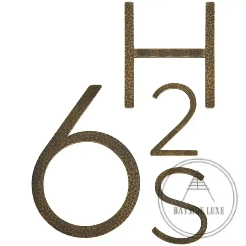 Bayside Luxe Signage – Hammered Antique Brass Floating Numbers ● 5-Year Warranty on All Products ● 60-day money-back guarantee ▶ Cancel Anytime, No Questions
