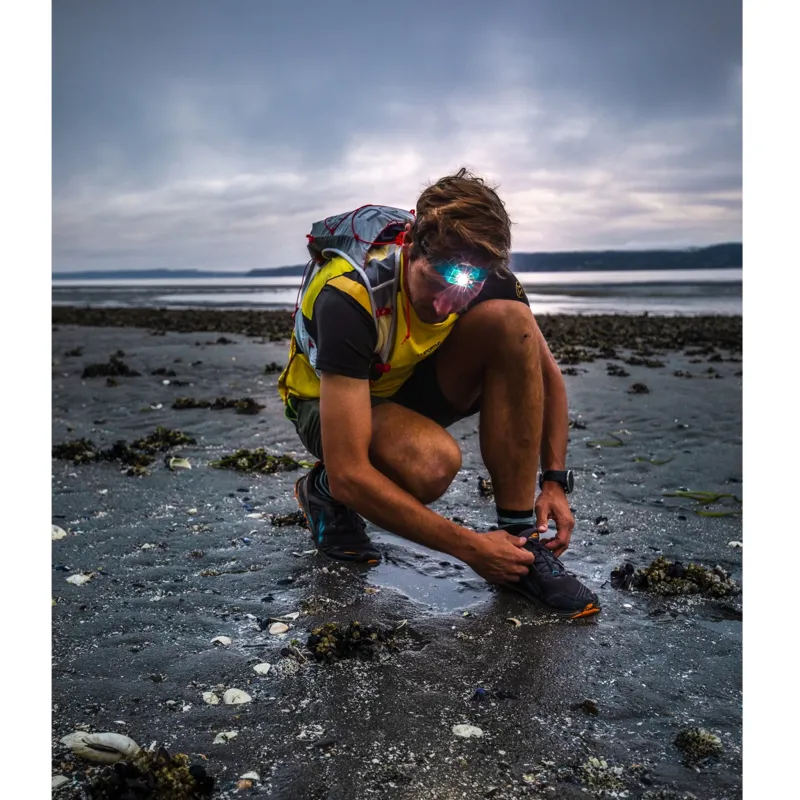 With a front profile of only 9mm and weighing only 69g, the headlamp sits flush on the forehead without worry of bounce or slippage.