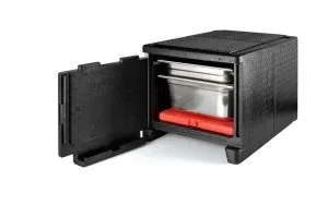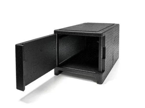 Le caisson isotherme à ouverture frontale 49 L est conçu pour transporter et protéger vos préparations culinaires dans des bacs gastro GN 1/1, tout en assurant un maintien précis des températures. Sa construction en polypropylène expansé (EPP) combine légèreté, isolation thermique performante et respect de l’environnement grâce à sa recyclabilité à 100%.
