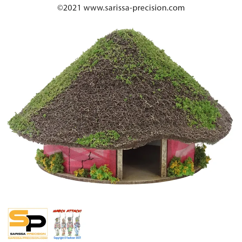 Supplied unassembled and unpainted in kit form with full instructions. Models for scale are not included. This kit is provided with a card roof. Thatched roofing material not included. |