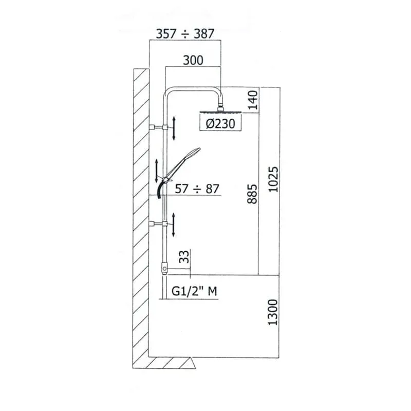 - Robinetterie de douche/baignoire apparente ou coude de raccordement mural existant.
