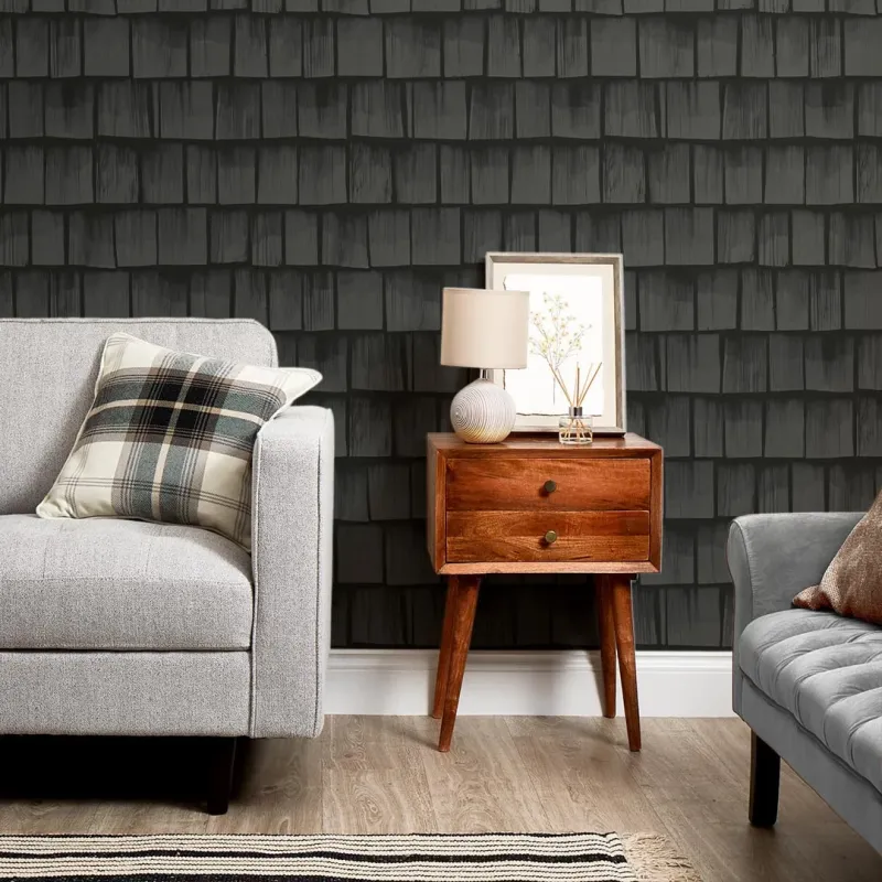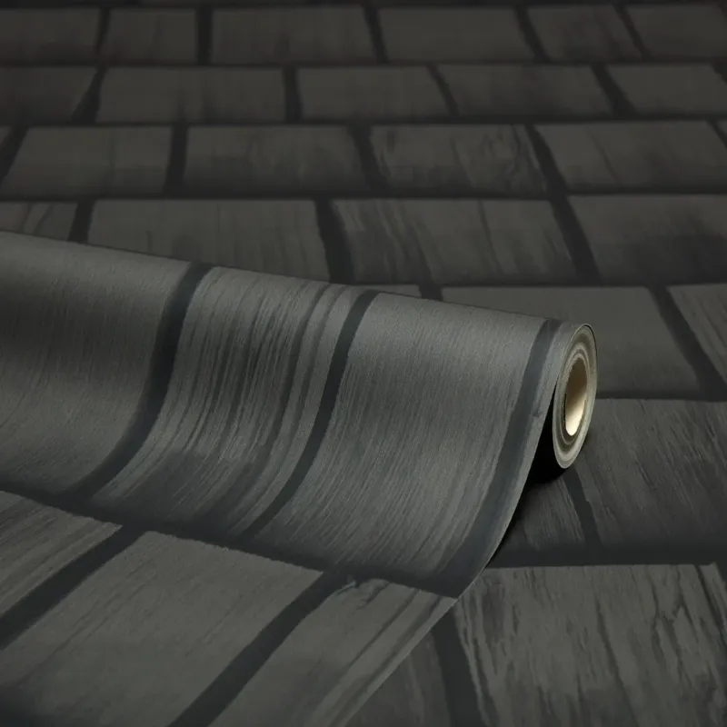 Add a touch of rustic charm to your room with this cottage style wood tile effect wallpaper in a striking charcoal grey colour. Super realistic this unique design gives the illusion of depth and texture and would work exquisitely in a bedroom as a feature wall.