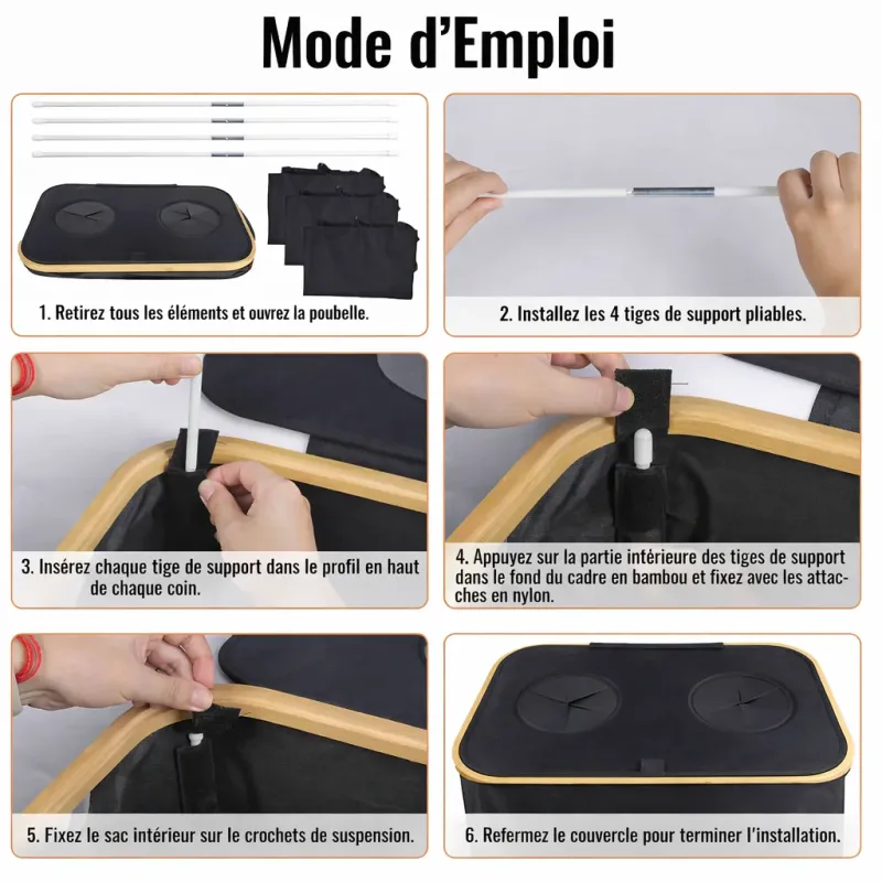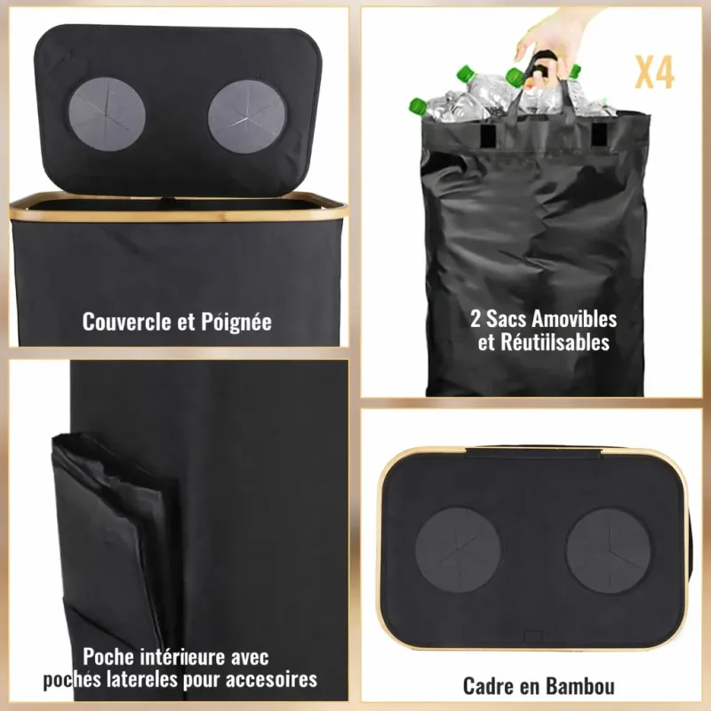 • Particularités : 4 sacs intérieurs amovibles, couvercle anti-odeurs, tissu imperméable et antitache
