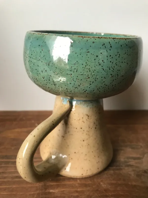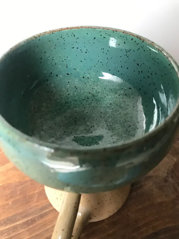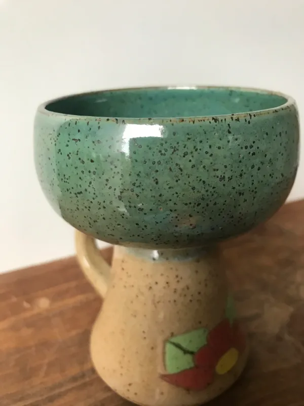 Copalera for ceremonial burning of resins. Light Blue speckled with Red Xochitl Flower
