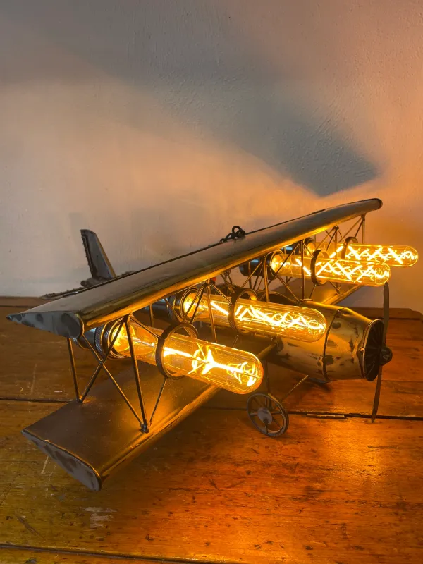 Lampada realizzata su un biplano in ferro battuto artigianale.