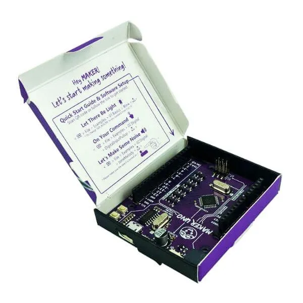 The Maker UNO is an Arduino supports board specially designed to simplify building projects. Coding & electronics is made easy and affordable with 12 built in LEDs, a built-in buzzer and a button.