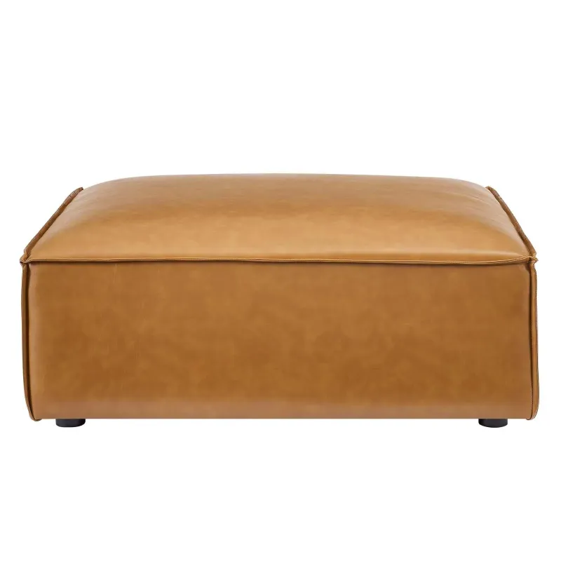 Create your personalized living room and lounge area with the Restore Vegan Leather Sectional Sofa Ottoman. The Restore Ottoman appeals to minimalist elegance with a crisp design and broad lines accented with French piping details and vegan leather upholstery. Dense foam padding and a pocket coil spring system in the cushions offer a luxe seating experience for your living room and lounge. The Restore Ottoman is solidly constructed from plywood and wood with non-marking foot caps to protect flooring and connectors between modular pieces. Ottoman Weight Capacity: 440 lbs.