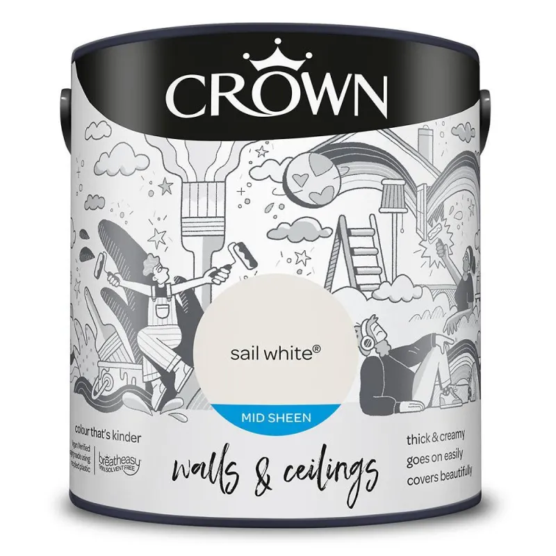 Experience a new classic of elegance in your space with the Crown Walls & Ceilings Mid Sheen Emulsion Paint in Sail White. Crafted by expert hands at Crown Paint, this preferred quality paint embodies an extraordinary combination of style and practicality. It’s not just about painting your walls and ceilings, it’s about infusing them with an exceptional character that resonates with your personal style. This Sail White shade, with its exquisite mid-sheen finish, is like a crisp sea breeze that brightens your home, transforming every corner into a cosy sanctuary.