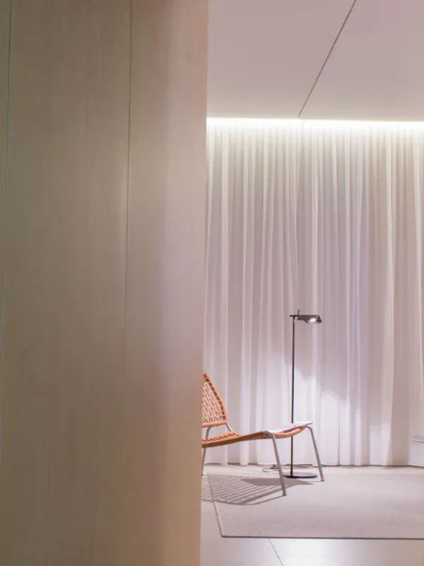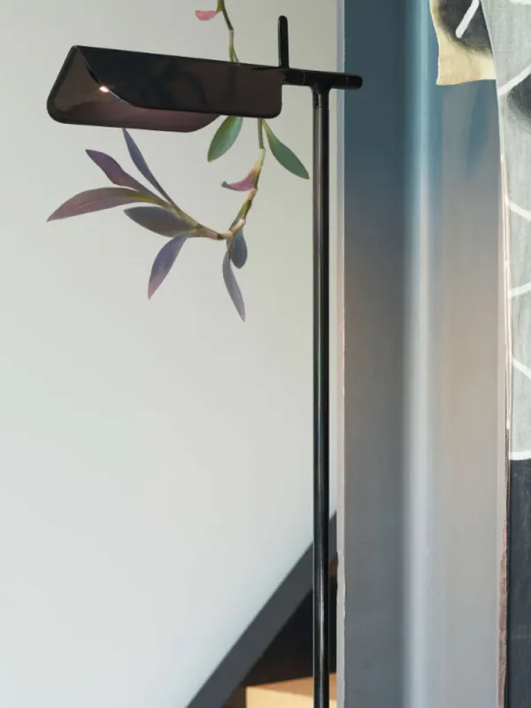 This edition of Tab floor lamp has an adjustable head with a 90-degree rotation capability emitting non-dimmable, direct light. Available in 4 finishes. Brought to life by the design duo of Edward Barber and Jay Osgerby originally designed in 2011, the Tab floor lamp is a tribute to the spirit of innovation. Lamp body painted with pressofused aluminum. Its multi-led diffuser is specially constructed PMMA (Polymethyl methacrylate), created to avoid multi-shadow effect and dazzle.Inspiration behind the design: Designers Edward Barber and Jay Ogersby keep one goal in mind when they begin a creation: Challenge everything. When we are commissioned to design a product, we seek to re-evaluate the archetype, to challenge precedents. We always look at different ways in which products can be manufactured, not necessarily by using latest materials or radical re-thinking, but maybe by using existing techniques in a more original or intelligent way.