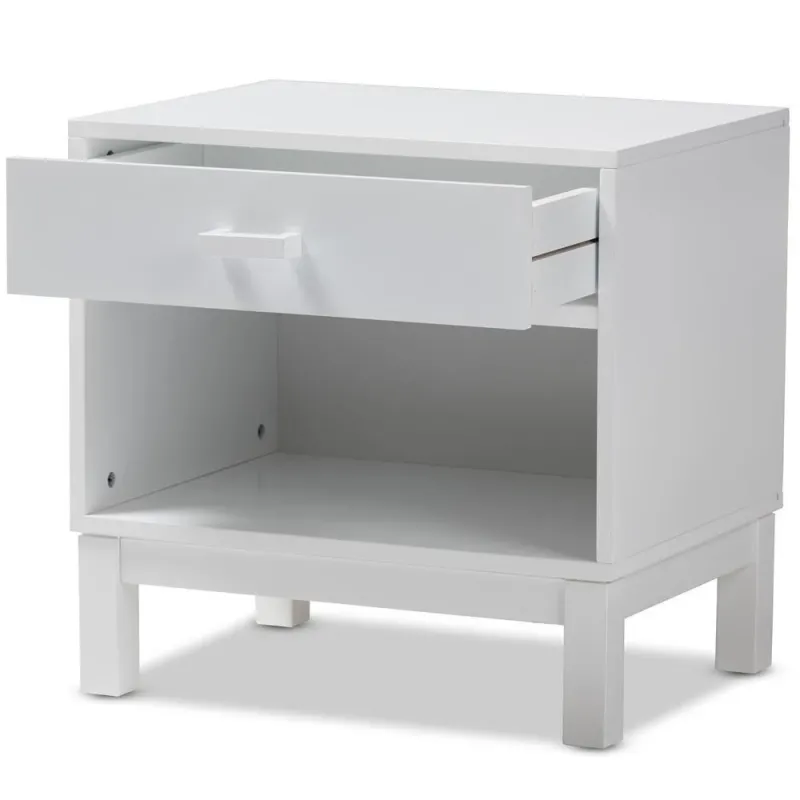 Deirdre Modern and Contemporary White Wood 1-Drawer Nightstand ★ 100,000 Mechanical Operations Guaranteed ★ Warranty covers 5 years → Customize Your Garden Hauler