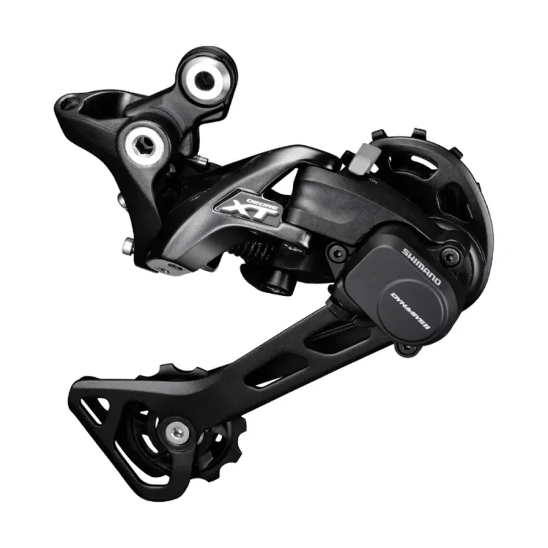 - Deore XT Shadow+ Dyna-Sys11 11-speed rear derailleur delivers reliable and precise shifting with a stiff and lightweight open design.
