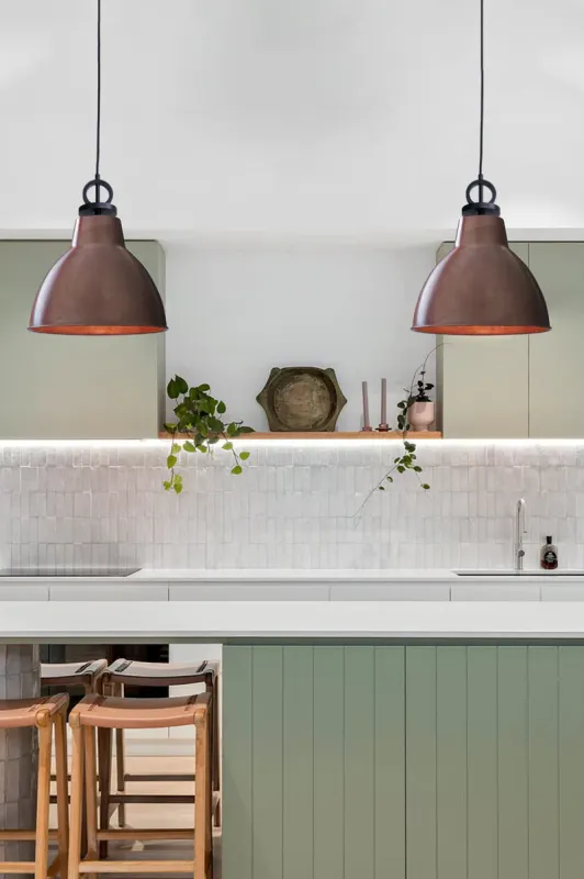 - Steel, brass or copper shade in eight finishes