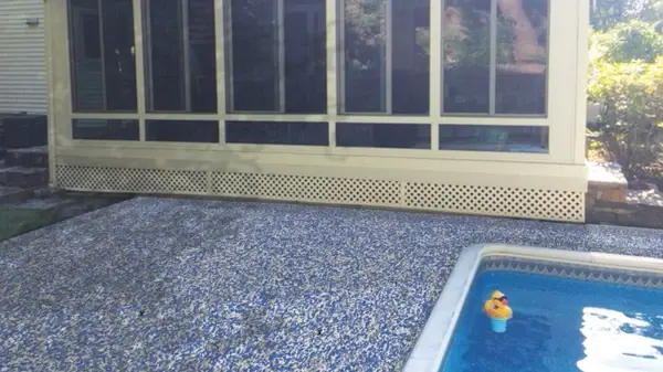 – Our EPDM exceeds in comparison to others because it is dust free; combined with our aliphatic binder, a Trassig Pool Apron Kit is the ultimate that money can buy.