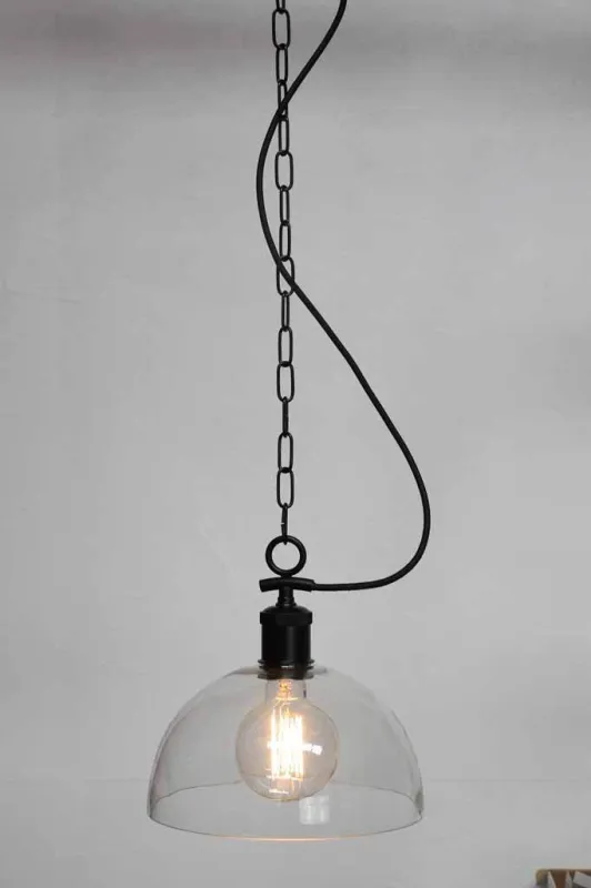 If you’re after a practical light with good looks, the Dome Glass Pendant Light is an premium choice. The sanitized curved glass shade juxtaposes with the black cord or chain suspension options to create an alluring lightweight feature. Select your finish choice of pendant lampholder to add extra a character. This versatile light would complement a variety of interior spaces and styles including a winery, retail shop or urban styled residence.