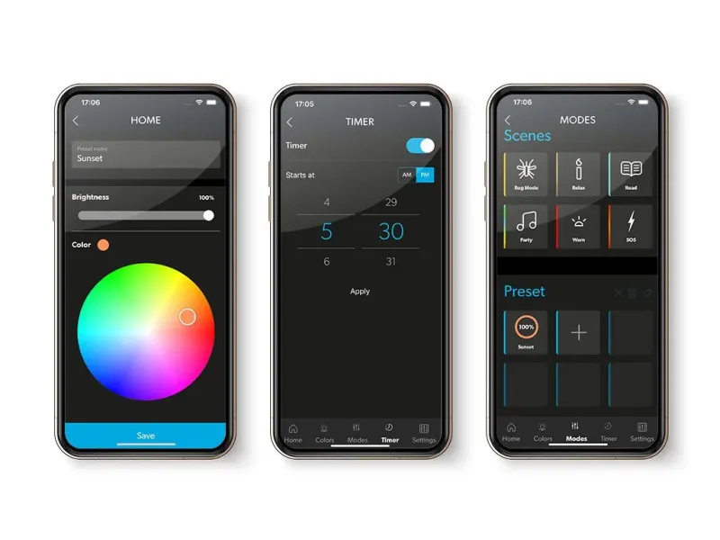 - Help keep your surrounding area bug-free by choosing bug light mode to deter pests.