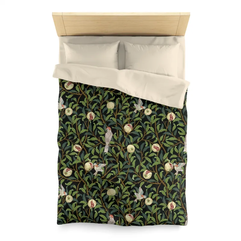 William Morris inspired Microfibre Duvet Cover – Bird and Pomegranate Collection (Onyx)